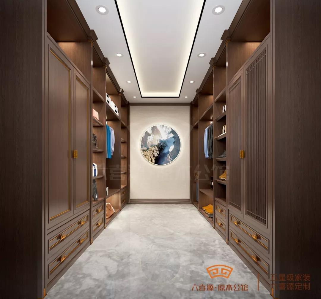 衣帽間屬于“門”型結構,左側的衣柜“一開一合”,簡約大氣;右側“一開半合”,內(nèi)斂有序。