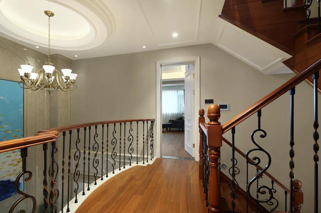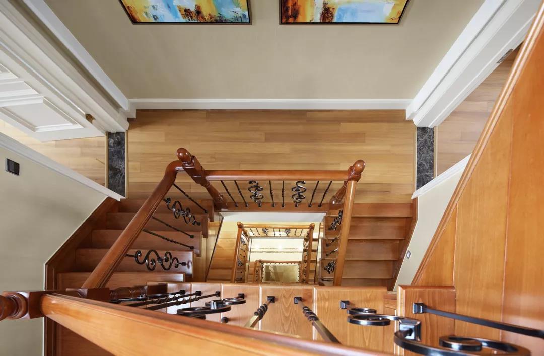 實木扶手與金屬柵欄的結合,帶來一種不同材質碰撞的美感。