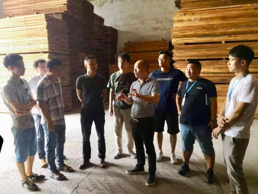六喜源施總熱情接待了三維家團(tuán)隊(duì),并帶領(lǐng)他們參觀了六喜源的木材倉(cāng)庫(kù)、木工車間、油漆車間等。施總介紹道:目前在工廠倉(cāng)庫(kù)的木材只是我們木材儲(chǔ)存量的1/3,我們還有很多的木材儲(chǔ)存在張家港、南沙港等港口。
